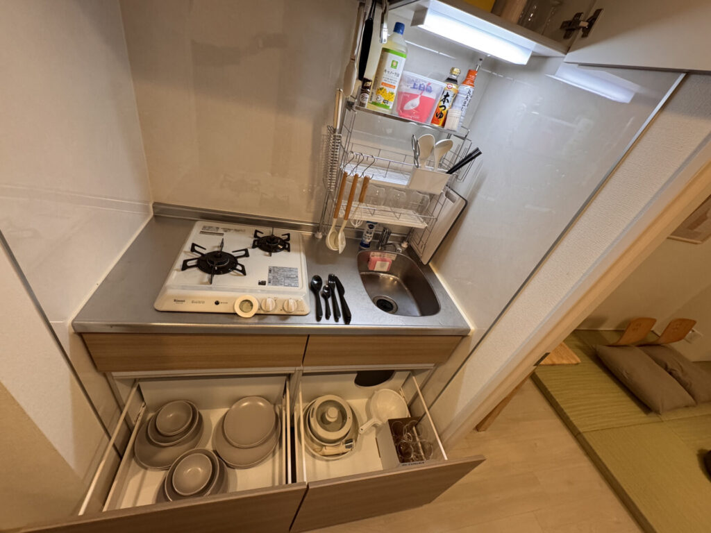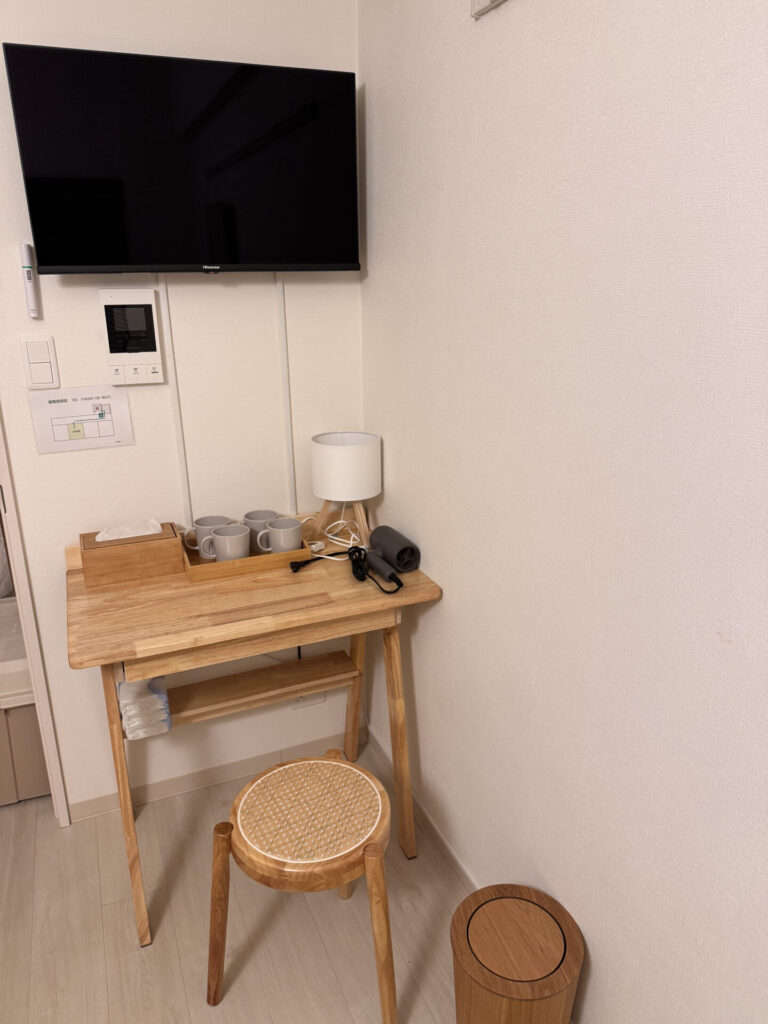 Inspired by Japanese design, the space offers a calm and cozy atmosphere—ideal for relaxing after a day of travel.